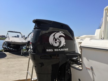 ボートの船外機にカッティングシートでロゴマークを入れました。
