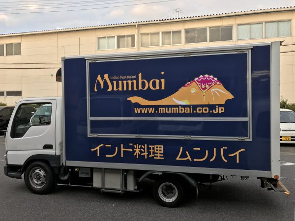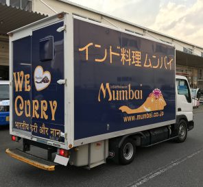 移動販売の車をラッピング 遠くからでも目に付きます。