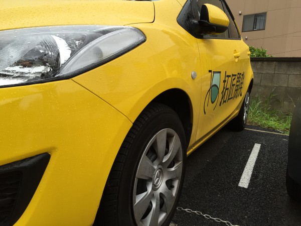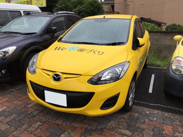 不動産屋の営業車をイメージカラーにラッピングして、