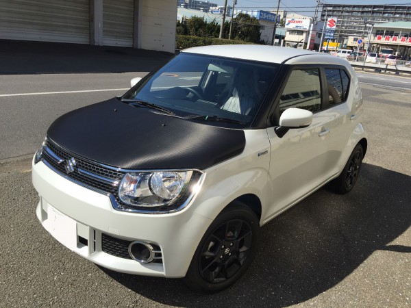 話題の車 イグニスのボンネットをカーボン調にラッピング