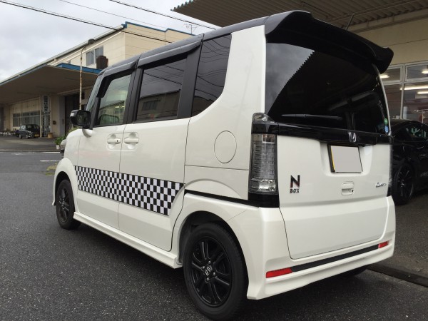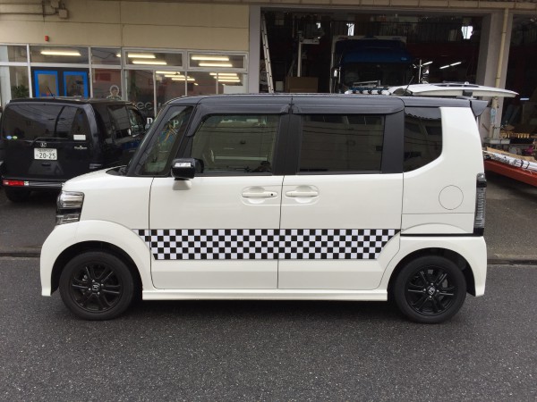 チェッカーフラッグ模様をサイドにデザイン。 スポーティーなイメージに。
