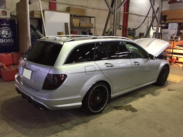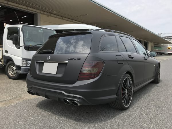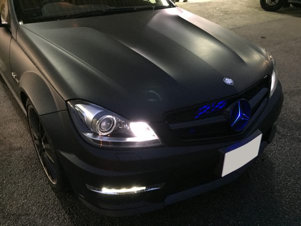 シルバーのベンツをエンブレムまでマットブラックに